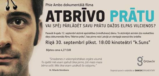 - 2015.gadā izrādījusi dāņu dokumentālo filmu "Atbrīvo prātu" par pasaulslaveno zinātnieku Ričardu Deividsonu. Pasākumu īstenojām 12.septembrī atzīmējot apzinātības dienu.